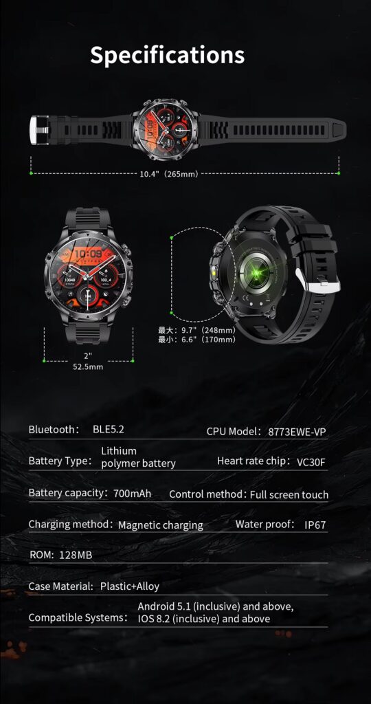 - Battery: 700mAh large capacity, providing approximately 5-10 days of battery life.